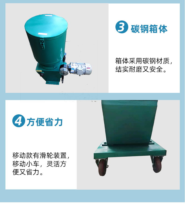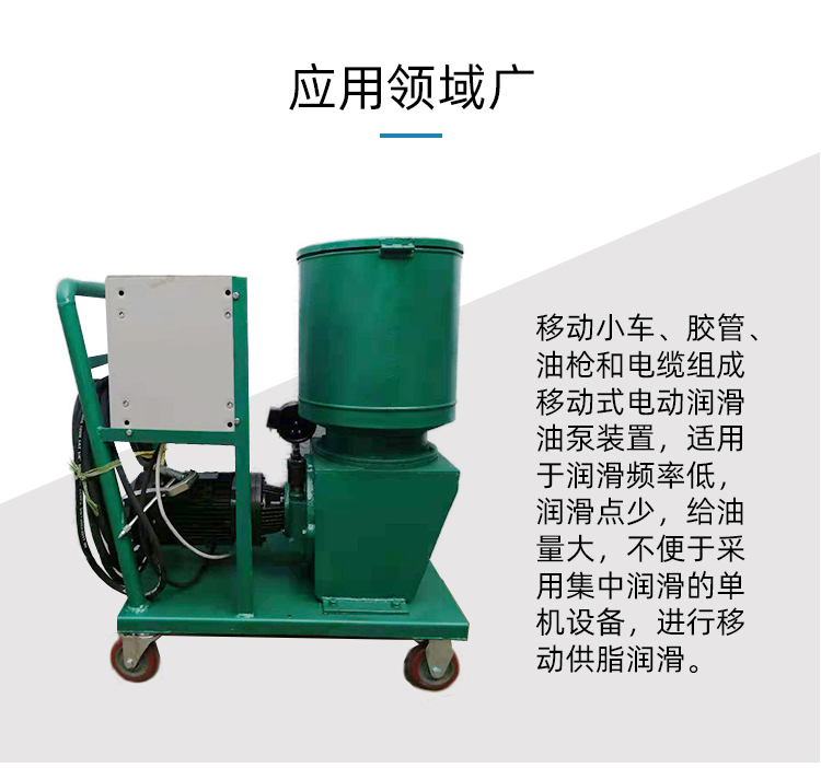 産品(pǐn)概述: 山(shān)東毅立(li)drb電動潤(run)滑泵黃(huáng)油泵DRB型(xíng)可移動(dòng)柱塞幹(gan)油站小(xiao)車潤滑(hua)設備
